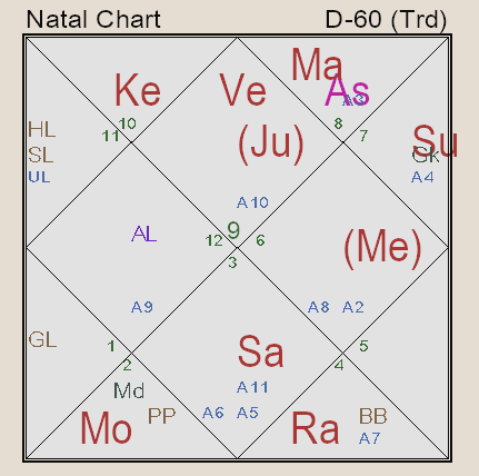Today Prashna of querent was will gold touch 2lakh ins/10gm. The above is the D60 equivalent of the prashna. Hora lord as Saturn. And the answer is maybe, even if it touches it is not going to sustain. This is as per the prashna. Now, we look at the gold price rise’s main reason; it does involve multiple parameters for its rise but the most prominent is de-dollarization. So, we ask another prashna will de-dollarization be a reality in the coming future? Yes/No. The below D60 prashna is the equivalent of the same and the answer of prashna kundali is No, de-dollarization will not be a reality anytime soon.
