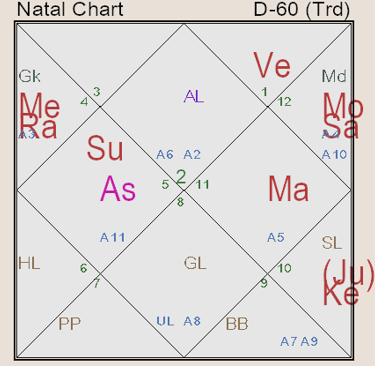 Today’s prashna was very interesting, someone asked me, if people have been wrongfully accusing you and robbing your work will they ever apologise. So, I said look “I don’t know” but may be prashna kundali can tell. Let us check it. So the above D60 is the above equivalent of the Prashna, the hora lord is the Moon. Here, we can say from the chart that a concrete Yes/No is possible. Now, when the hora lord itself is with the Moon and third aspect of Saturn on ascendant, it will be humbling exercise for all them who wrote checks with their mouths that they can’t cash. But Jupiter’s fifth aspect on the ascendant will give the wisdom to know the better choice. Moon+Saturn makes pessimistic and depressive combination without benefic aspect. Here, there is no such aspect on Moon in the chart. So the answer is Yes, they will put out a formal apology with name and take back everything only after depression and humbling experience. So the prashna kundali gives the answer as Yes.